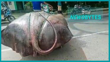 Local fisherman in Rajbari caught a colossal ray, weighing around 400 kilograms, from the Padma River on Thursday morning.