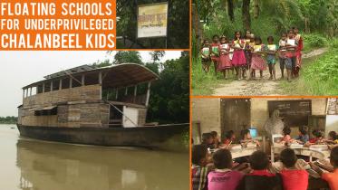 Some 22 floating schools locally known as “Nouka School” moved in to the submerged Chalanbeel area spanning over three districts providing academic facilities to more than 2,000 underprivileged children in the last few years.