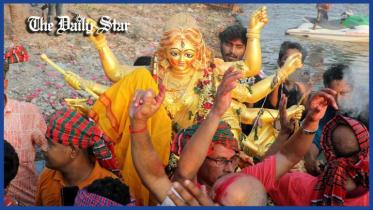 The 5-day festival of “Sharadiya Durga Puja” ended with the immersion of idols in the Buriganga.