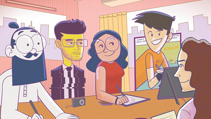 Oishik: The entire digital scene is very online-based and the community is quite small. To enter this market one simply has to find the artist community, who are easily found online. I had no idea how to access them before I started out. But all it takes is a Facebook search for the people who are drawing cartoons in Bangladesh. There are a couple Facebook groups. Once you get acquainted with the community, if they can understand that you have talent and interest, they become extremely helpful.