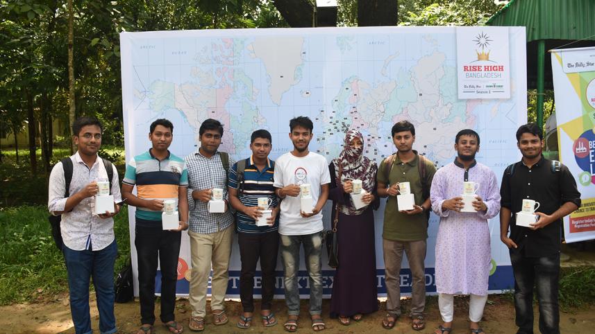 The programme started at 9:00am and continued until 5:00pm yesterday. Despite regular classes and examinations, a great number of students approached the booths set up on the campus premises. The Rise High volunteers explained to them the objectives, incentives, and rules of participation.