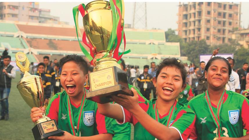 The girls have been carrying the country's football flag for quite some time now. The group of Under-15 girls had dominated two triumphant campaigns in the AFC U-14 Girls' Regional Championship in 2015 and 2016, and on December 24, 2017 they added another conquest to that list. This one was extra special as they triumphed in front of an adoring home crowd, beating India in the SAFF Under-15 Women's Championship final at the Birshreshtha Shaheed Mostafa Kamal Stadium on December 24. This time too, they went through the tournament unbeaten and were a cut above the rest. What was as inspiring as their performance was the level of interest shown by locals as more than 8,000 spectators turned up at the venue. They continue to show that with some investment in proper training and facilities, Bangladesh can produce world-beating athletes from groups previously not considered fit for the purpose.