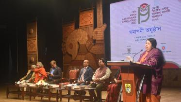 Amidst the shivering cold in the capital, there was a long line of young, cheerful girls and boys on the premises of the Bangladesh Shilapakala Academy, to attend the last day of the month-long 19th Asian Art Biennale today. The closing ceremony of the exhibition was held at the National Theater Hall of the Bangladesh Shilpakala Academy (BSA).