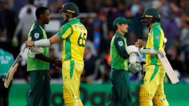 Prolific opener David Warner smashes a brilliant 122 but could not claim victory for Australia as they slipped to a 10-run defeat to South Africa in their Cricket World Cup clash at Old Trafford on Saturday, leaving them facing a semi-final against England.