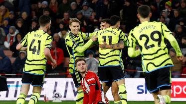 Martin Odegaard, Jayden Bogle's own goal, Gabriel Martinelli, Kai Havertz and Declan Rice put the visitors 5-0 at half-time before Ben White rounded off the scoring.