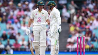Marnus Labuschagne and Usman Khawaja grabbed half-centuries as Australia made the best of a rainy day one to be 147 for two at stumps in the third Test against a frustrated South Africa in Sydney on Wednesday.
