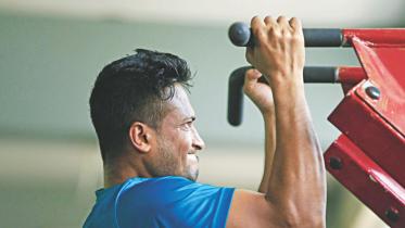 Bangladesh cricketer Tamim Iqbal, who suffered an injury to his stomach during Bangladesh’s practice match at Chittagong gets his stitches removed.