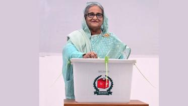 Awami League President and Prime Minister Sheikh Hasina cast her vote at Dhaka City College polling centre at 8:03am today