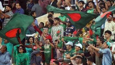 See the fans of Bangladesh cricket cheering their favourite team during the sole Test match against India at Fatullah Stadium.