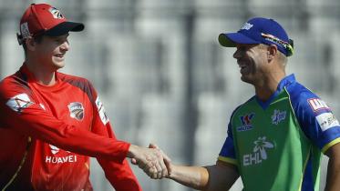 The fans did not have to wait long today to witness the most eagerly-anticipated meeting between Australian duo Steve Smith and David Warner -- both serving international bans, as they came out to represent their respective teams Comilla Victorians and Sylhet Sixers at the toss today during the second day of the Bangladesh Premier League (BPL).