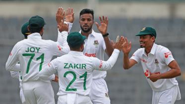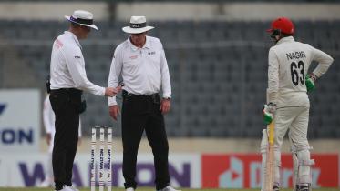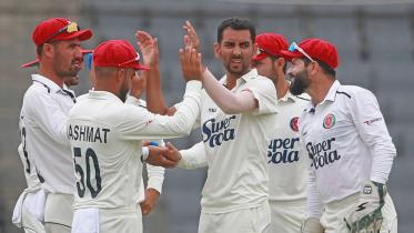 Afghanistan pacer Nijat Masood took a fifer to put on a leash on the Bangladesh's batting effort in the first session of the second day of the only Test at the Sher-e-Bangla National Cricket Stadium on Thursday.