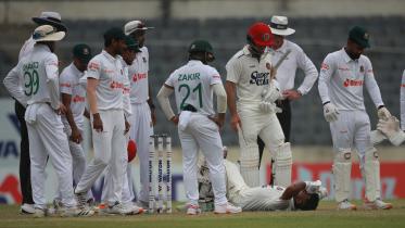 Afghanistan managed to keep away any further damage on day three of the one-off Test against Bangladesh at the Sher-e-Bangla National Cricket Stadium on Friday after losing two wickets in the final session of the day followed by the loss of skipper Hashmatullah Shahidi, who walked off retired hurt after getting hit by a bouncer on his helmet.