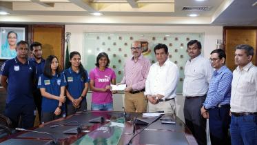 Captain Sabina Khatun along with two others and coach Golam Rabbani Choton came to the BCB premises today to collect the reward