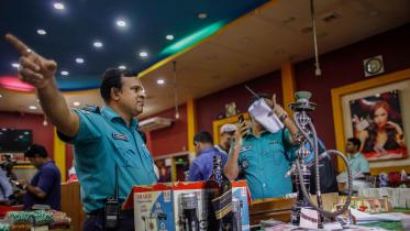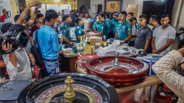 Police seize casino, gambling equipment, liquors and cash conducting drives at four clubs in Motijheel area of Dhaka.