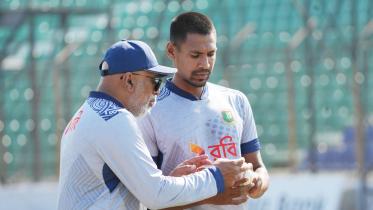 Bangladesh head coach Chandika Hathurusingha was focused on helping an out-of-form Mustafizur Rahman come back to life in training at the Zahur Ahmed Chowdhury Stadium in Chattogram yesterday ahead of the three-match ODI series against Sri Lanka starting on Wednesday. The left-arm pacer had an abysmal T20I series against the Lankans as he conceded 42, 42, and 47 runs in the three matches respectively while bagging just two wickets at an economy rate of 10.91 which did little to justify his pedigree as a white-ball specialist. Photos: BCB