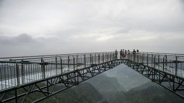 Suspended more than 120 metres (400 feet) above a gaping chasm, the world's longest cantilevered glass skywalk is delighting and terrifying visitors in China.