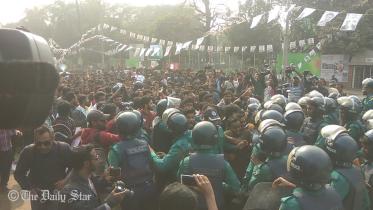 March towards EC: Cops stop DU protesters at Shahbagh