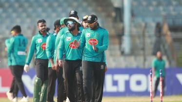 Abahani players and officials broke out into wild celebrations after Tanjim Ahmed struck the runs that clinched the club's 22nd Dhaka Premier League (DPL) title following a four-wicket win over defending champions Sheikh Jamal in the final round of Super League games in Mirpur yesterday.