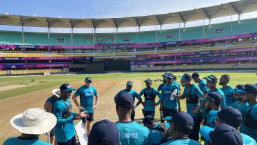 "Shakib [Al Hasan] is 100% fine and ready for the first match,” Shanto said during the toss for their second warm-up match against defending champions England at the Barsapara Cricket Stadium in Guwahati today.