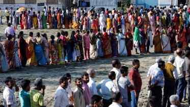 Millions of voters stand in queue in front of polling stations to exercise their franchise in the seventh and final phase of Indian parliamentary elections.