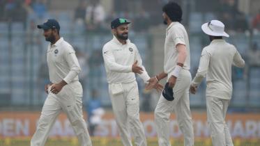 India dismissed Sri Lanka for 373 on another hazy day in the pollution-tainted third Test as cricket authorities say they would rethink using New Delhi during the smog season.