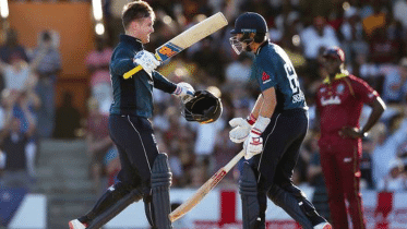 Jason Roy and Joe Root scored centuries as England clinched a record-breaking victory over West Indies in a display of pure power hitting and shot making by both sides in their opening one-day international in Barbados on Wednesday.