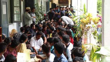 Law enforcers release three students of Dhaka University around nine hours after they were handed over to the Shahbagh Police Station by a group of activists of Bangladesh Chhatra League.