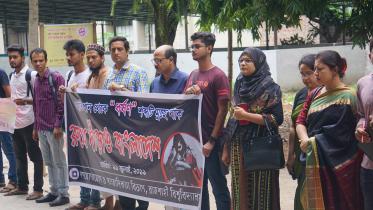 Students and teachers of Mass Communication and Journalism department of Rajshahi University have formed a human chain protesting the rising incidents of rape across the country.