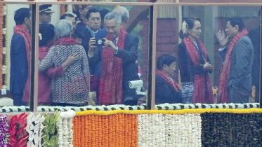 India displays its military muscle, socio-cultural diversity and its unprecedented outreach to South East Asian countries as it celebrates the 69th Republic Day with a grand parade at the Rajpath in New Delhi, the principal promenade of the Indian capital.