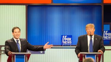 Donald Trump unleashes fiery, off-color rhetoric at Thursday's Republican debate, as American conservatives mull embracing his divisive candidacy or finding a way to derail the controversial billionaire's march to the nomination.