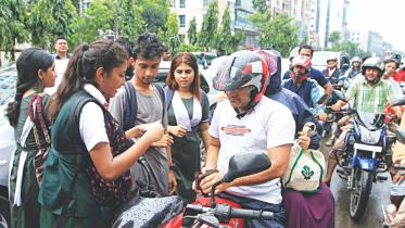 Agitating students yesterday stopped the motorcade of Water Resources Minister Anwar Hossain Manju in Dhanmondi to check the papers of the vehicle.