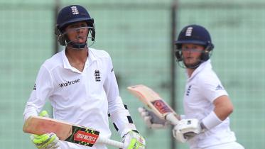 Teenage debutant Haseeb Hameed struck his maiden half-century as England took firm control on the fourth day of the first Test against India in Rajkot on Saturday.