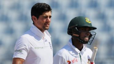 After restricting Bangladesh to 220, England are at 50 for 3 when play is called off for the first day of the second Test match of the series at Sher-e-Bangla National Stadium, Dhaka