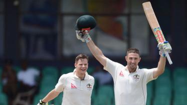 Unbeaten centuries from Shaun Marsh and skipper Steven Smith power Australia to 235 for one at lunch against Sri Lanka on the third day of the final Test in Colombo.