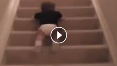 [WATCH NOW] Cute baby slides down staircase like it’s no big deal!