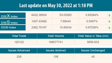The stock market in Bangladesh continued its gaining streak for five consecutive days today.