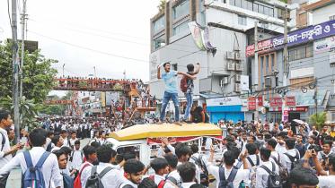 Rejecting assurances from three ministers, student protesters hit the streets for the fifth straight day yesterday, issuing a clarion call to meet their demands for a safe and orderly road and justice for their two fellows killed in recent road crash.