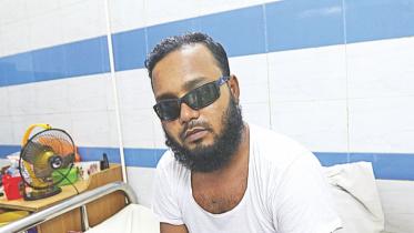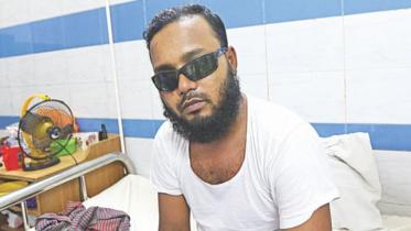 Injured college student Siddiqur Rahman perceives little light after the bandage of his left eye was removed today following the latest surgery at Sankara Nethralaya in India's Chennai, doctors say.