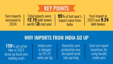 Bangladesh imported more yarn in 2024 than in the previous year, with the lion’s share of the key raw material for readymade garments (RMG) coming from India.