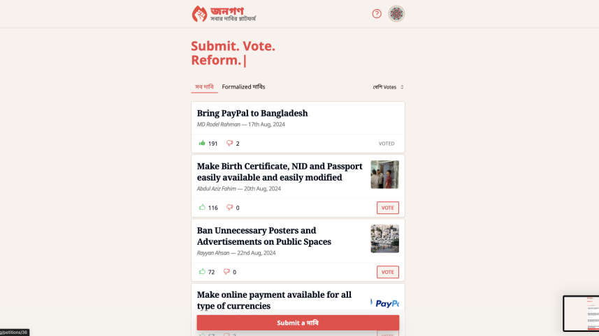 A new online platform, Jonogon, has been launched in Bangladesh to allow citizens to submit petitions and receive formal responses from relevant authorities. The platform aims to provide a structured process where individuals can raise issues and gather public support. Once a petition garners enough votes, a legal team will formalise the request and submit it to the relevant governmental or institutional authorities.