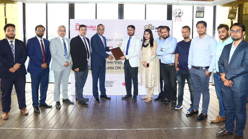 One Bank Limited has signed a Memorandum of Understanding (MoU) with Dhamakashopping to convert its customers into digital wallet holders through OK Wallet digital transactions. The agreement was signed today on Tuesday at a restaurant in the capital between Dhamakashopping and One Bank. Through this agreement, OK Wallet Holders and Dhamakashopping customers will be able to adopt innovative e-commerce-centric solutions.