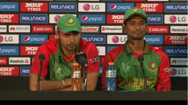 Mashrafe Mortaza and Tamim Iqbal speaks in press conference after Bangladesh v Scotland match in the ICC Cricket World Cup 2015 on March 5.