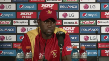 Elton Chigumbura speaks in press conference after West Indies v Zimbabwe match in ICC Cricket World Cup 2015 on February 24.