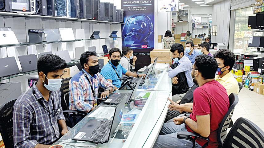"We sell about 12,000 laptops every month. The price of laptop hard disks, RAM, routers, motherboards, and processors has increased," said Mahfizur Rahman, in-charge of Ryans Computers at Multiplan Center on Elephant Road.