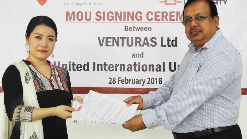 On 28 Febrary 2018, Ms.YORIKO UEDA, Founder and CEO of VENTURAS LTD signed a Memorandum of Understanding (MoU) with Mr. Chowdhury Mofizur Rahman, Vice Chancellor of UNITED INTERNATIONAL UNIVERSITY (UIU) in the theme of organizing the 1st ever Robotics Contest for College level students in Bangladesh.