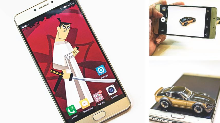 The design is tried and tested to be the go-to style for mobile phone manufacturers. The glass is curved slightly along the edges. The same curves are mirrored on the metal back. The unit we got is the champagne gold.