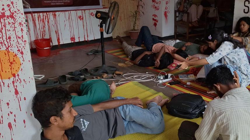 The nine students on hunger strike are Omar Samudra (Bangla, 2019–20), Isha Dey (Music, 2021–22), Rama Sain Marma (Sports Science, 2021–22), Ahmed Mugdho (English, 2021–22), Naeem Shahjahan (English, 2021–22), Sumaiya Shikder (Marketing, 2021–22), Joshad Zakir (Music, 2020–21), Sudarshan Chakma (Bangla, 2019–20), and Dhrubo Barua (Bangla, 2018–19).