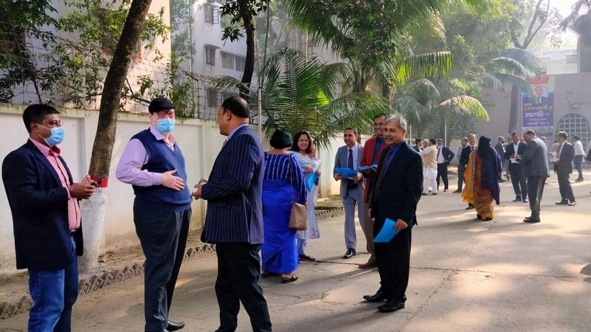 Pro-Awami League teachers are contesting the polls under "Blue Panel" and pro-BNP teachers under "White Panel".
