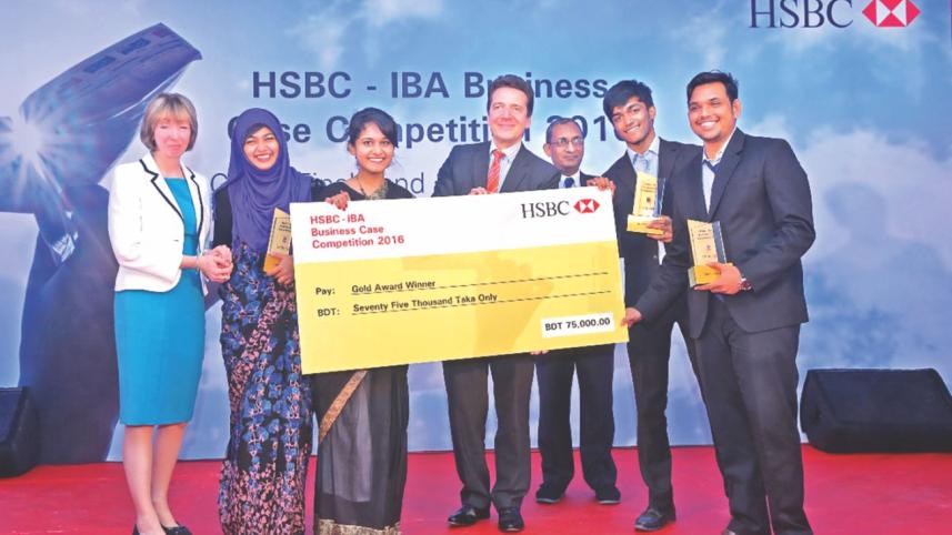 The grand finale of the HSBC-IBA Business Case Competition 2016 took place on April 22 at Lakeshore Hotel, in Banani, Dhaka. Out of 42 teams, 6 made it to the final round, representing the leading universities of Bangladesh. The finalist teams – two each from the Institute of Business Administration, Dhaka University (IBA-DU), and North South University, and one each from Bangladesh University of Professionals (BUP), and the Faculty of Business Studies (FBS), Dhaka University – had to solve unpublished business cases within 2.5 hours and present their solutions in front of a panel of judges for a chance to compete in the regional grand finale in Hong Kong.