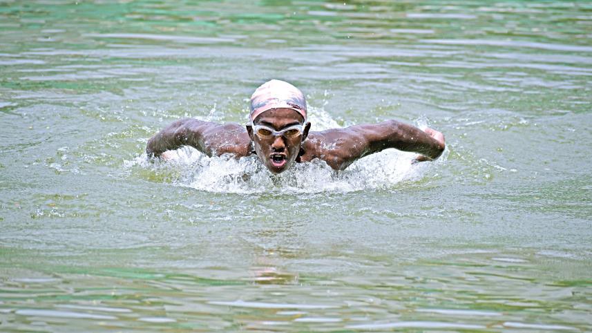 Rabbi practices at least 4 to 6 hours a day in two ponds in Bogura, as the swimming pools of the district administration have been shut for years.